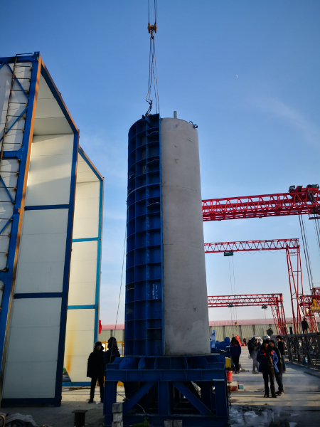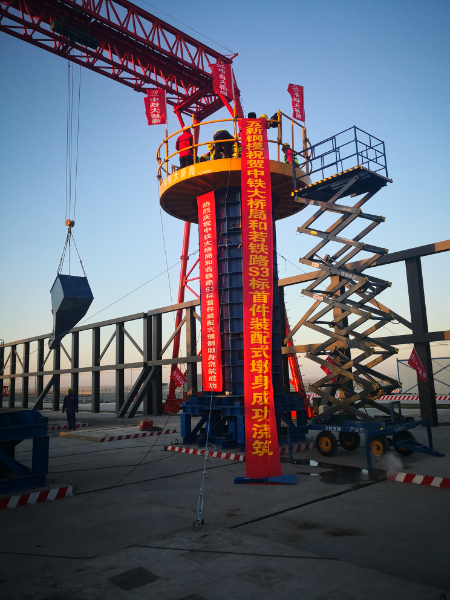 2019年12月26日,中鐵大橋局六公司和若鐵路S3標(biāo)項(xiàng)目部成功澆筑首件預(yù)制墩身。為滿足預(yù)制構(gòu)件的高精度、高標(biāo)準(zhǔn)要求,項(xiàng)目部現(xiàn)場(chǎng)人員與五新鋼模售后專業(yè)技術(shù)人員共同配合,使鋼筋籠、鋼模板和預(yù)制臺(tái)座精準(zhǔn)吻合;17時(shí)28分,開始混凝土澆筑施工;19時(shí)30分,隨著施工人員最后一斗混凝土的澆筑,首件墩身的預(yù)制作業(yè)圓滿完成。