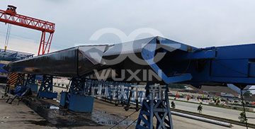 3、配備可移動的內(nèi)模自動縱移裝置,可完全替代傳統(tǒng)的卷揚機(jī)拖拉方式,操作簡單,出入模平穩(wěn)、安全,可大量減少人員、設(shè)備的需求,且一套自動縱移裝置可用于多個制梁臺座,投入成本低。